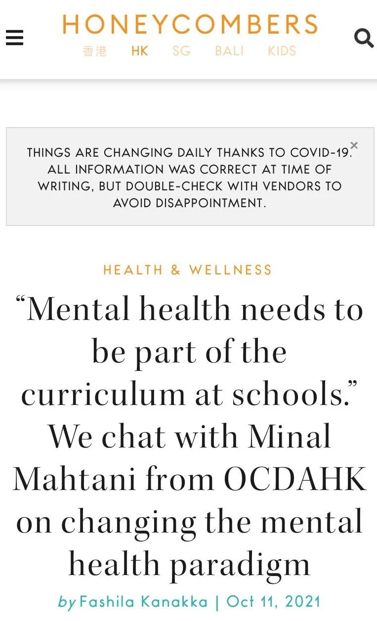 SCMP - ‘A mental health crisis’: Hong Kong charity OCDAHK launches free virtual counselling service to get help to adults in need, interviewed by Anthea Rowan